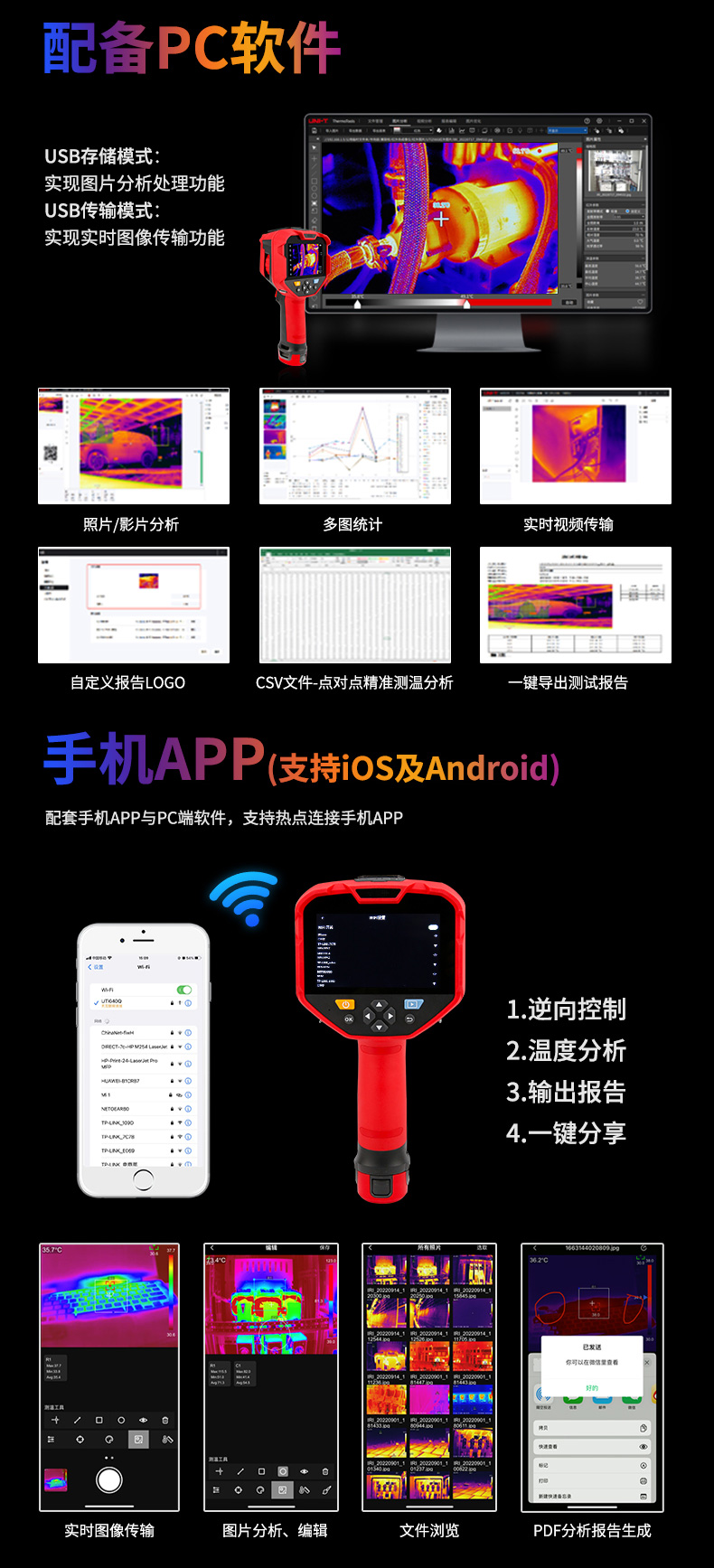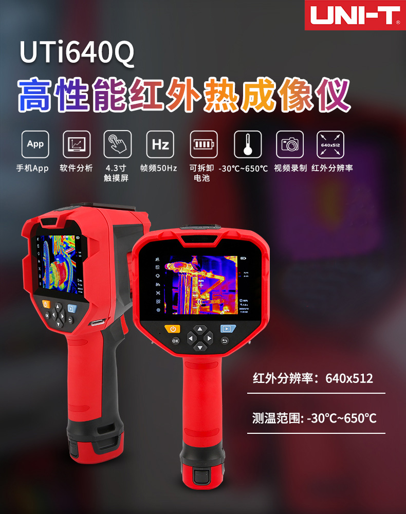 UTi640Q 红外热成像仪包含以下型号:UTi640Q(红外分辨率640x512,测温-30℃~650℃),/