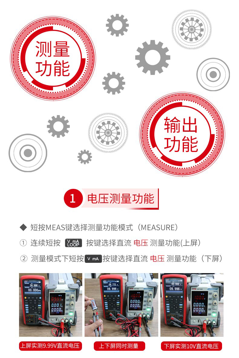 UT725是一款高性能、高精度、手持式、多功能过程校准仪。具有达到0.02%的高精度的直流电流电压输出和测量功能,可对多种电性能和物理性能参数进行测量和输出,具有自动步进和自动斜坡输出功能,可用于快速线性度检测; 存储功能使得系统设置更加快捷;数 据传输功能使用户可快速进行测试通讯。支持两路信号处理。
