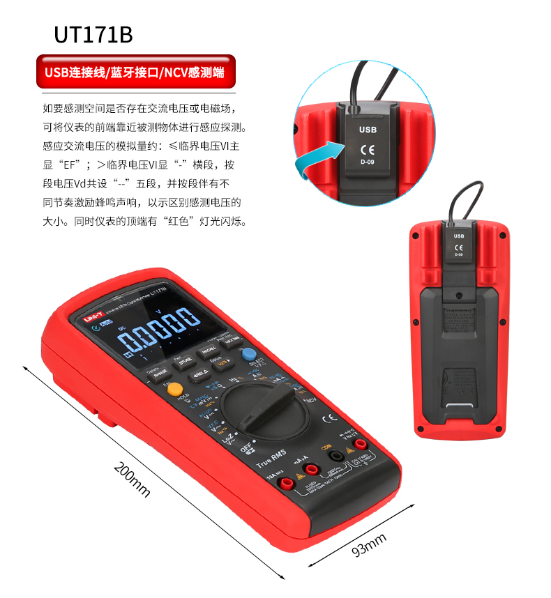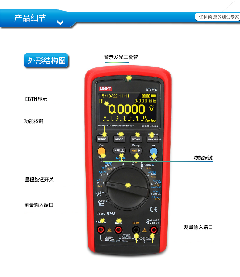 UT171系列工业真有效值数字万用表包含以下型号:UT171B(59999/真有效值),/UT171A(40000位/真有效值)/UT171C(59999位真有效值)/