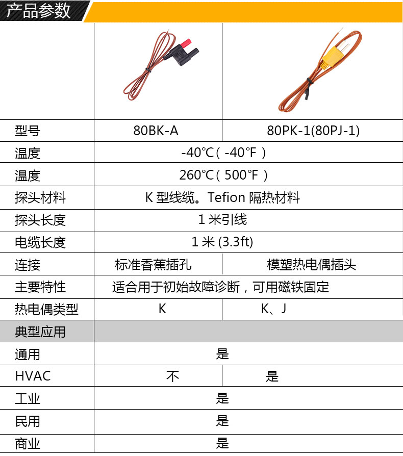 福禄克FLUKE80PK-40万用表温度表探头 温度传感器