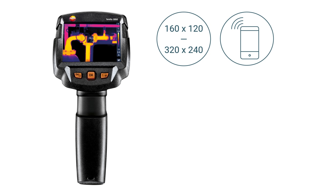 令人印象深刻的热成像技术,操作非常简单,testo 868热像仪具有以下特点:高分辨率图像:160 x 120像素的红外分辨率,德图Super红外超像素技术,可实现320 x 240像素的红外分辨率;19,200个温度测量点,以确保精确的热成像