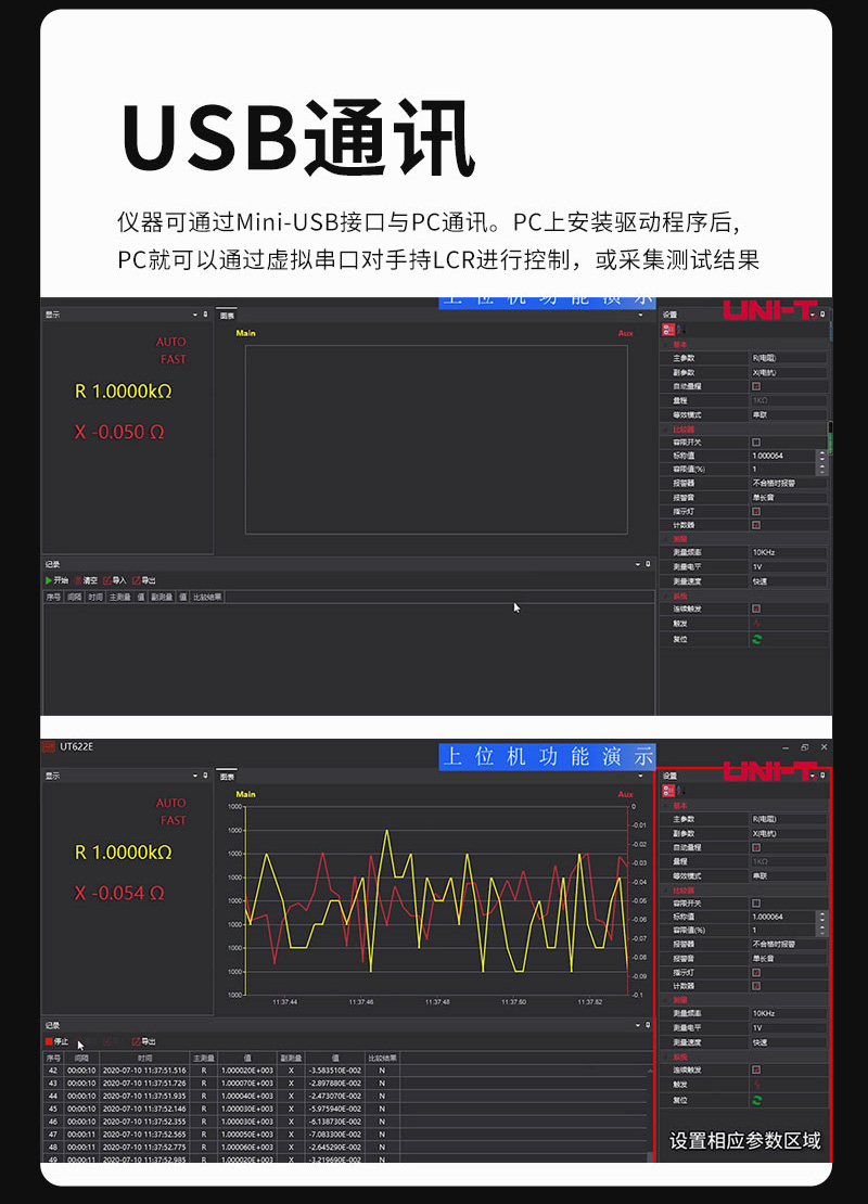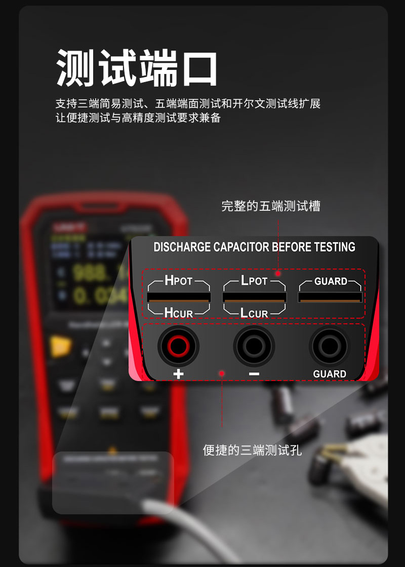 UT622系列LCR数字电桥是用于测量电感、电容、电阻等元件参数的便捷手持式测量仪器,体积小巧,采用 3.7V 1800mAh锂聚合物电池供电或外部电源适配器供电,既可适用于台式机的应用场所,更为流动测量和手持测量场合提供了极大方便。仪器操作简洁直观,测试频率、参数、速度选择即按即现。