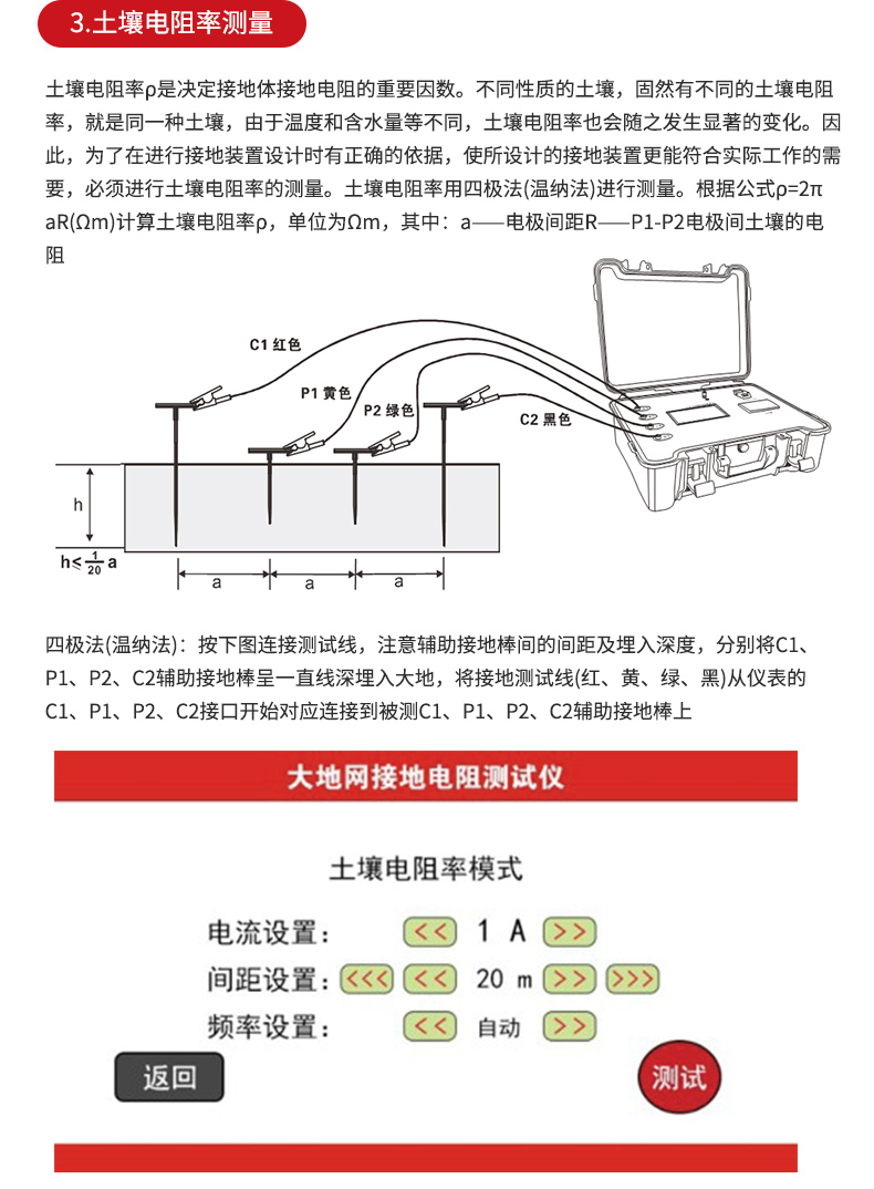 UT576A数字式大型地网接地电阻测试仪又名工频接地电阻测试仪、接地电阻表等是检验测量接地电阻常用仪表的常用仪表。它采用了新型变频交流电源、双频测量技术、超大可触摸彩屏和微处理机技术,满足二线、三线、四线测试阻抗要求,同时可以接地电阻测量、土壤电阻率测量、跨步电压测量、分布电势测量、接触电压测量等参数。