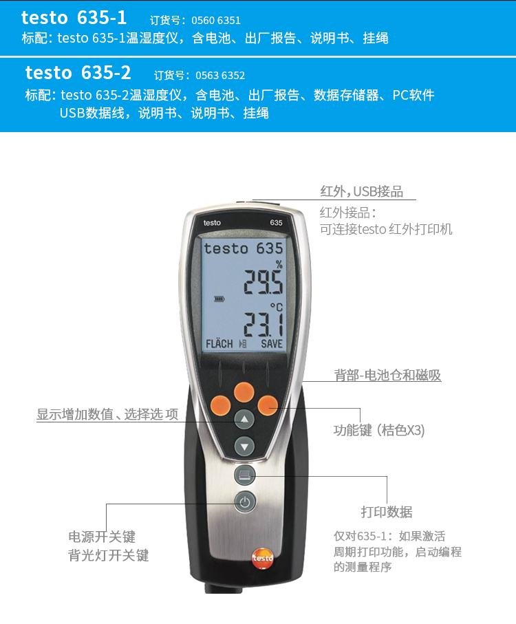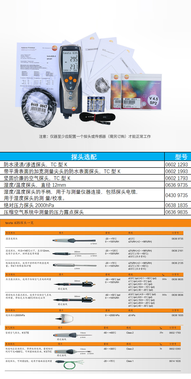 原装品牌供应:提供覆盖所有应用场合的温湿度计 testo 635-2全系配件.