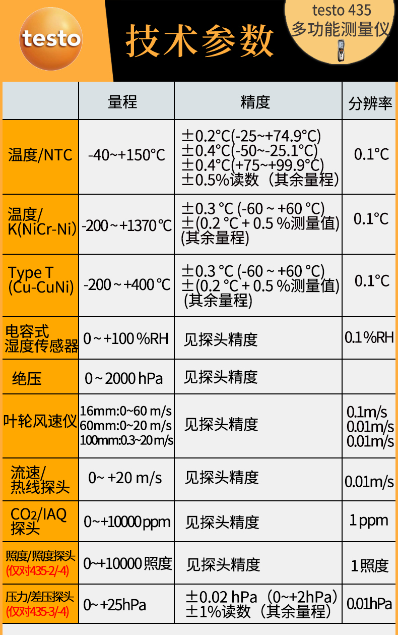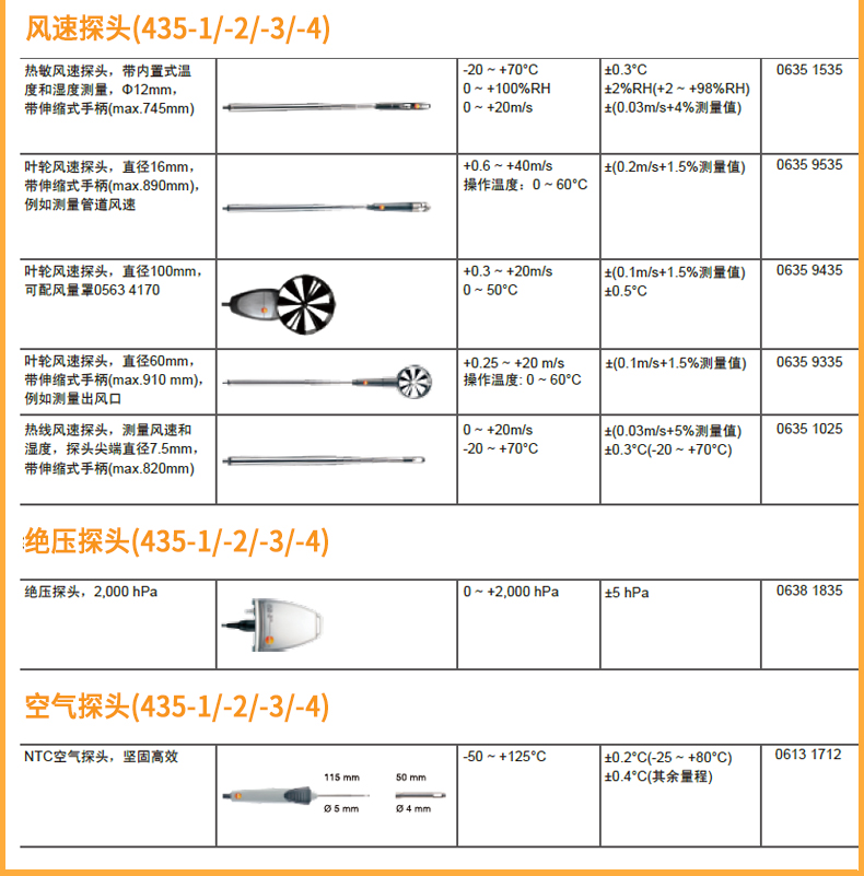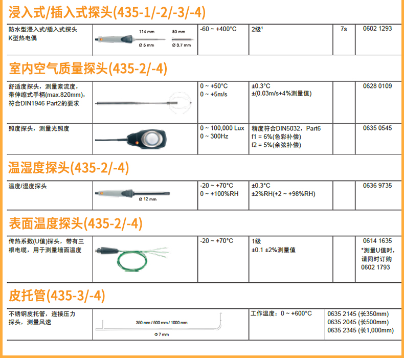 原装品牌供应:提供覆盖所有应用场合的多功能测试仪 testo 435-3全系配件.