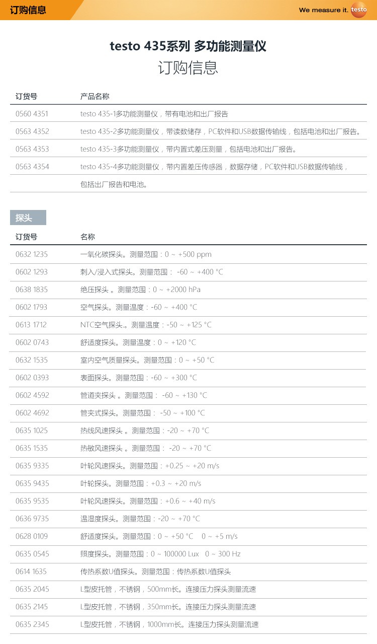 原装品牌供应:提供覆盖所有应用场合的温湿度记录仪 testo 435-4全系配件.