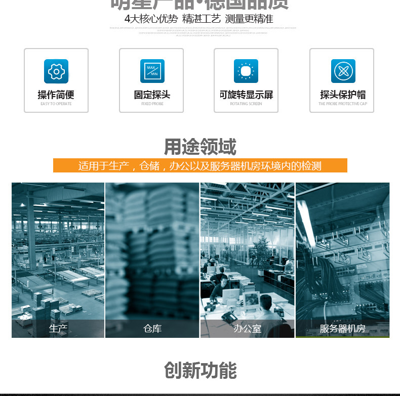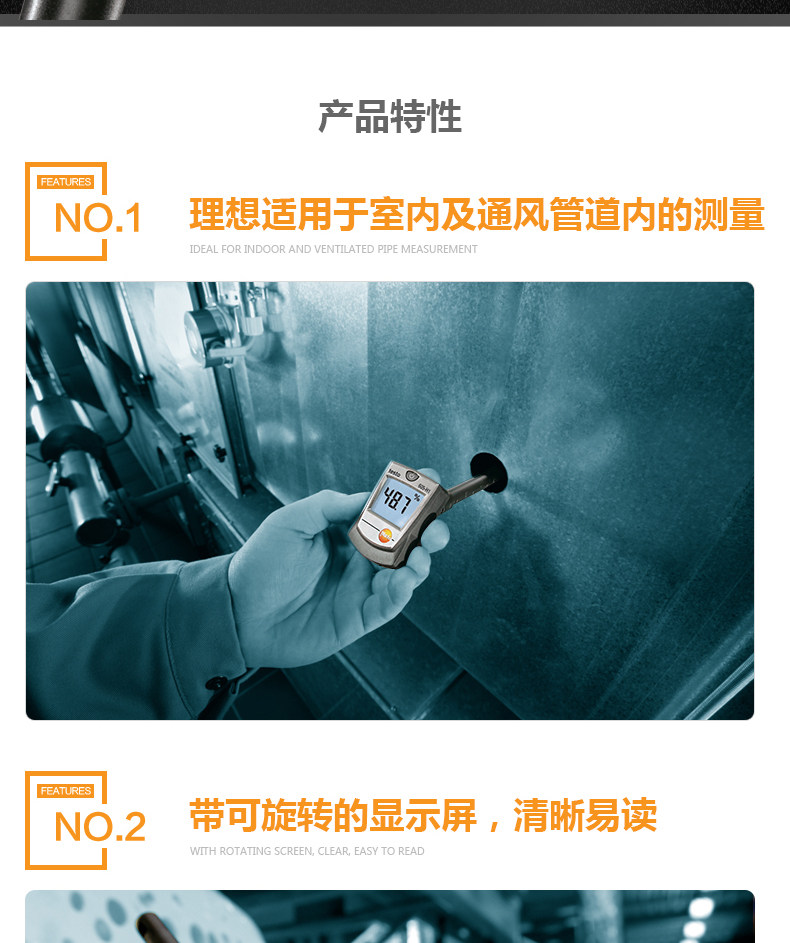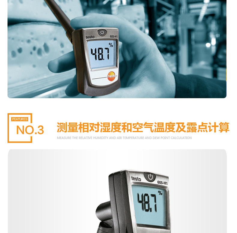 新款口袋系列仪器,带可旋转的显示屏,易于读数,测量精确。长期稳定的湿度传感器能保证测量数据长期的准确性。