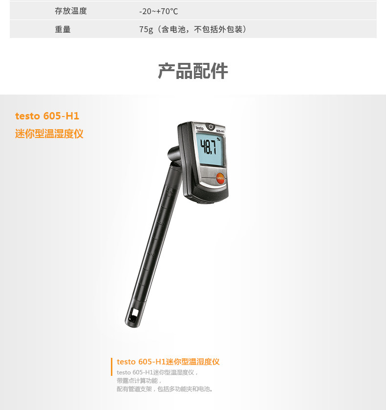 原装品牌供应:提供覆盖所有应用场合的温湿度计 testo 605-H1全系配件.