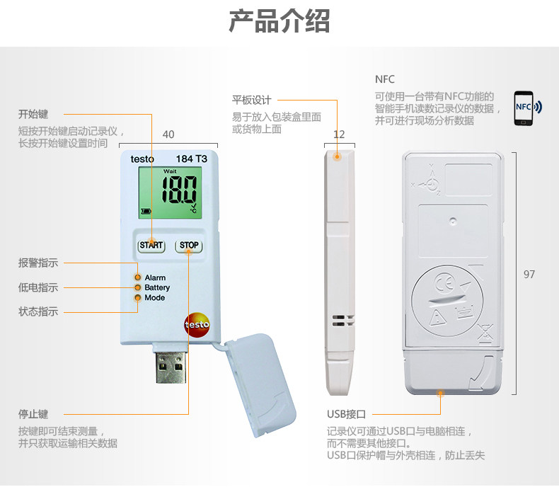 原装品牌供应:提供覆盖所有应用场合的温度测量仪 testo 184 T3全系配件.