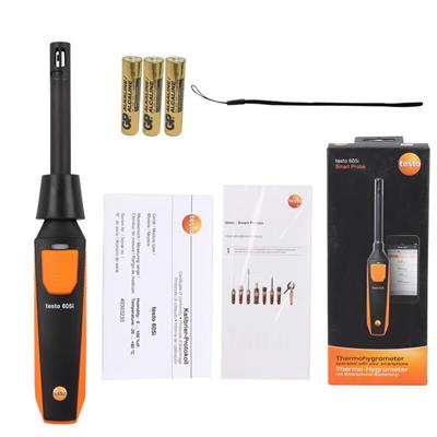 产品包含testo 605i无线迷你温湿度测量仪 ,包括电池和校准协议。