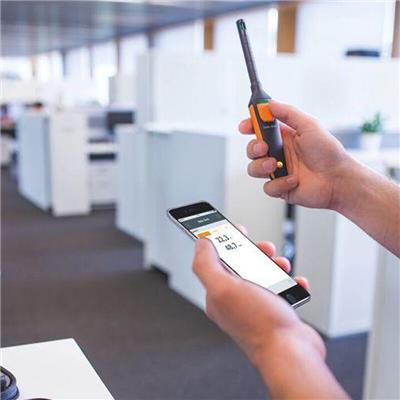 结构紧凑的testo 605i无线迷你温湿度测量仪 对专业的测量技术智能化地加以使用:它将智能手机/平板电脑以及德图smart probe APP加以结合,可用于对房间和管道的温湿度进行可靠测量。