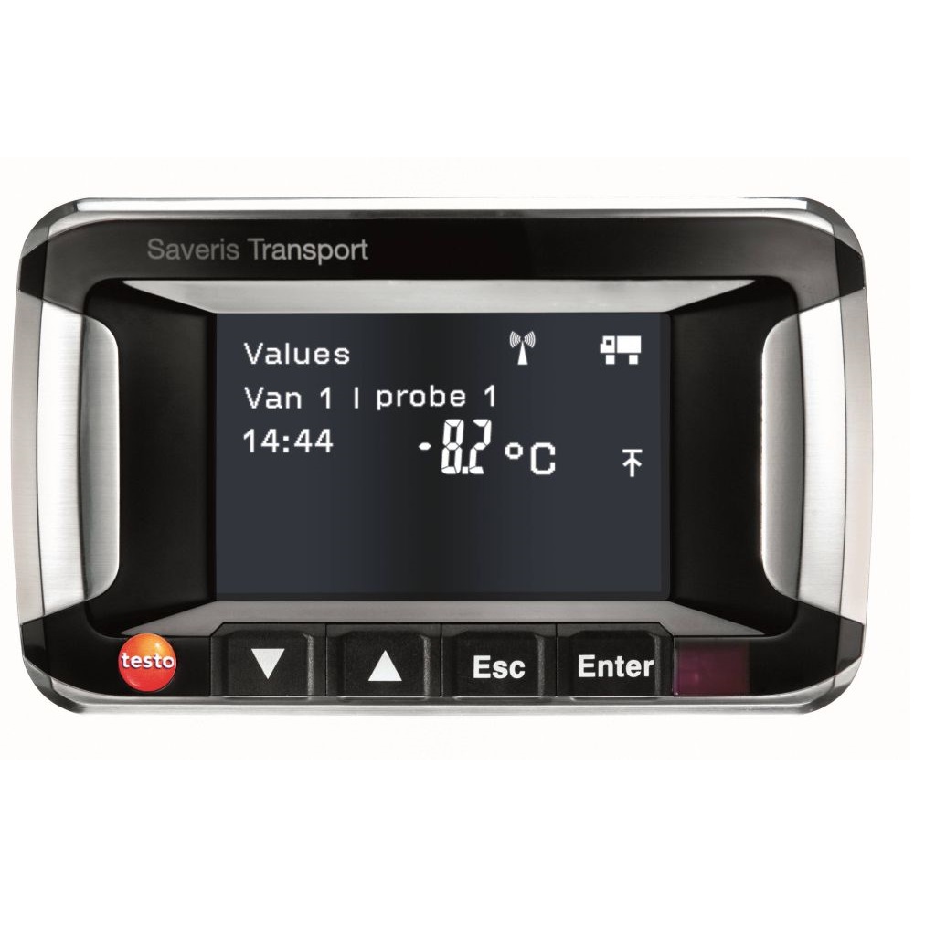 testo Saveris驾驶舱单元,无线频率868 MHz,用于测量数据打印的红外接口,USB电缆,电源适配器(12/24 V DC)以及带伸缩功能的杯托。