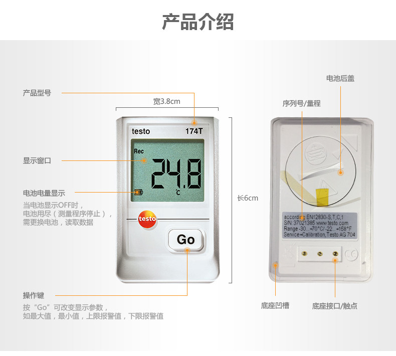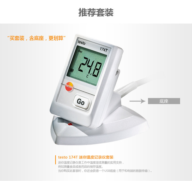 原装品牌供应:提供覆盖所有应用场合的温度测量仪 testo 174 T 套装全系配件.