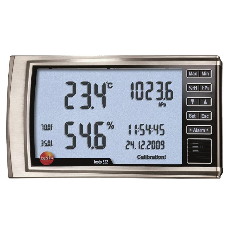 testo 622数字式温湿度大气压力表,提供一目了然的温湿度及大气压力测量数据。适用于监测 环境空气,尤其比如在实验室内做标定或装置实验设备时。