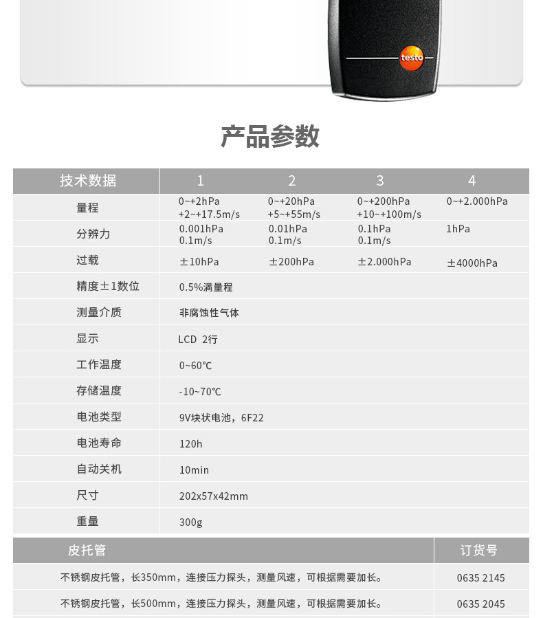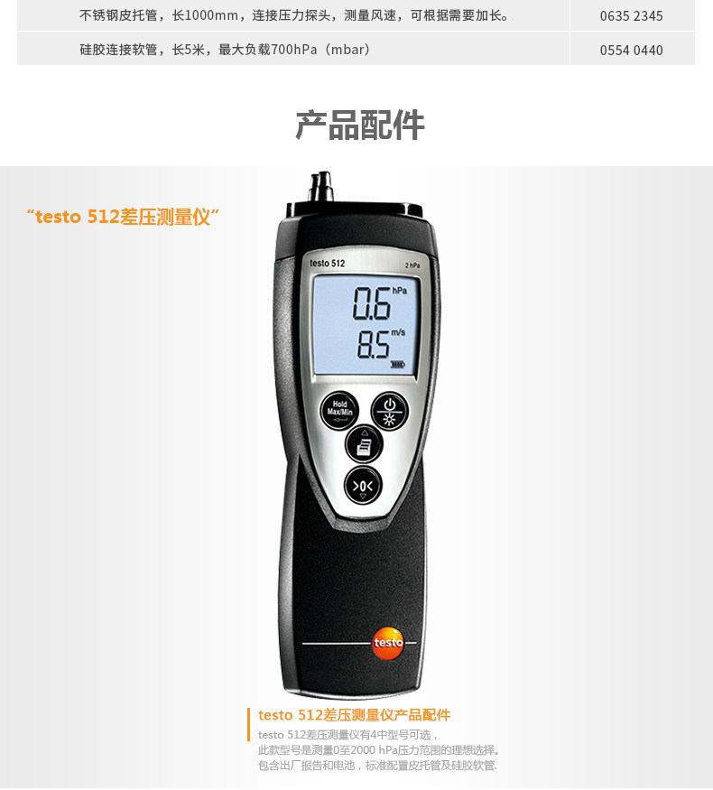 原装品牌供应:提供覆盖所有应用场合的差压计 testo 512-1全系配件.