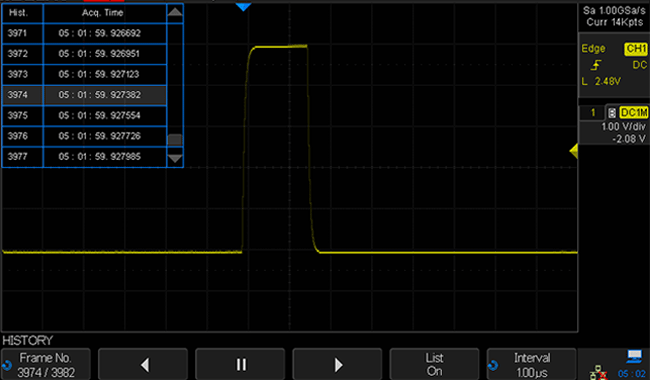 | 时基范围 | 1.0 ns/div ~ 50 s/div ROLL: 50 ms ~ 50 s/div |