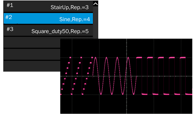 | 任意波 | 0.01 Sa/s ~ 2.5 GSa/s采样率;24 pts ~ 512 Mpts/ch存储深度,提供分段编辑和播放的功能 |