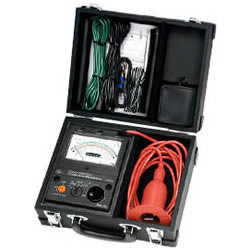 额定测试电压可变方式(1kV~10kV)。自动放电功能可释放充电电荷。双重刻度便于读取数据。低压用1000V/100MΩ绝缘电阻计。3种电源方式(内置电池、AC100V、车载用电池)。记录仪输出端口